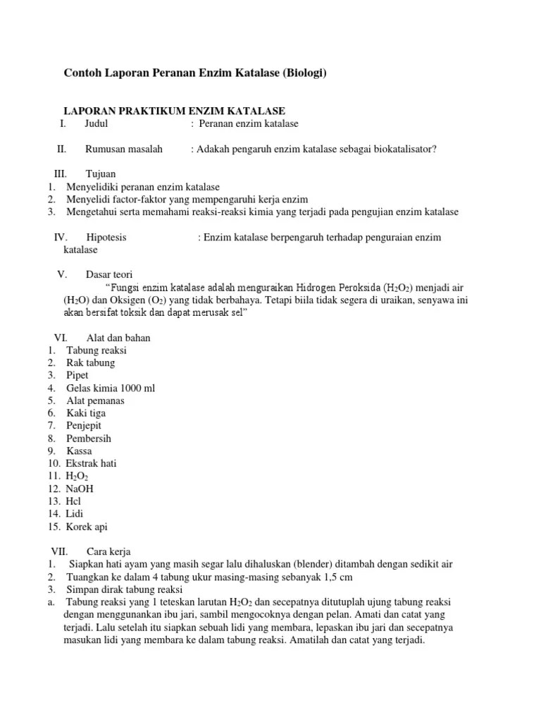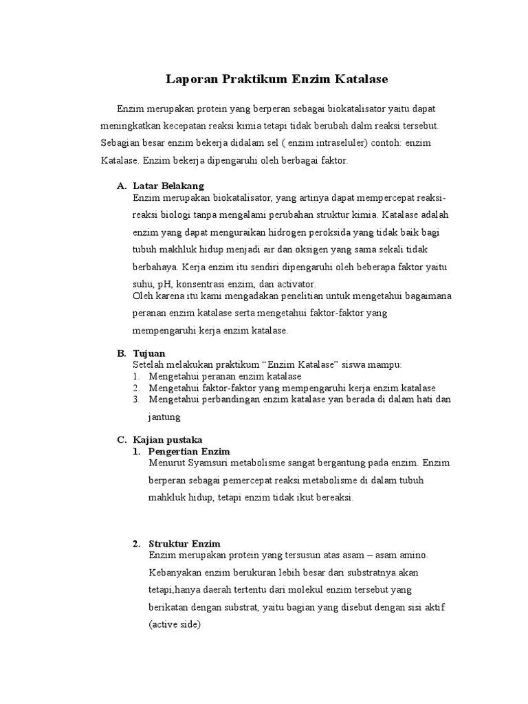 Contoh Laporan Enzim Katalase - Praktikum Enzim Katalase Pada Hati Ayam / Bila tidak segera diuraikan, senyawa ini akan bersifat toksik dan dapat merusak sel.